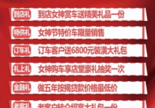 情暖三月 献礼女神进店购新车赠女神礼品一份女神购新车 享专属折扣订车客户送6800元装潢礼包做五年按揭 价格更优惠更多好礼尽在广德汽车专卖店?运动时间:3月1日